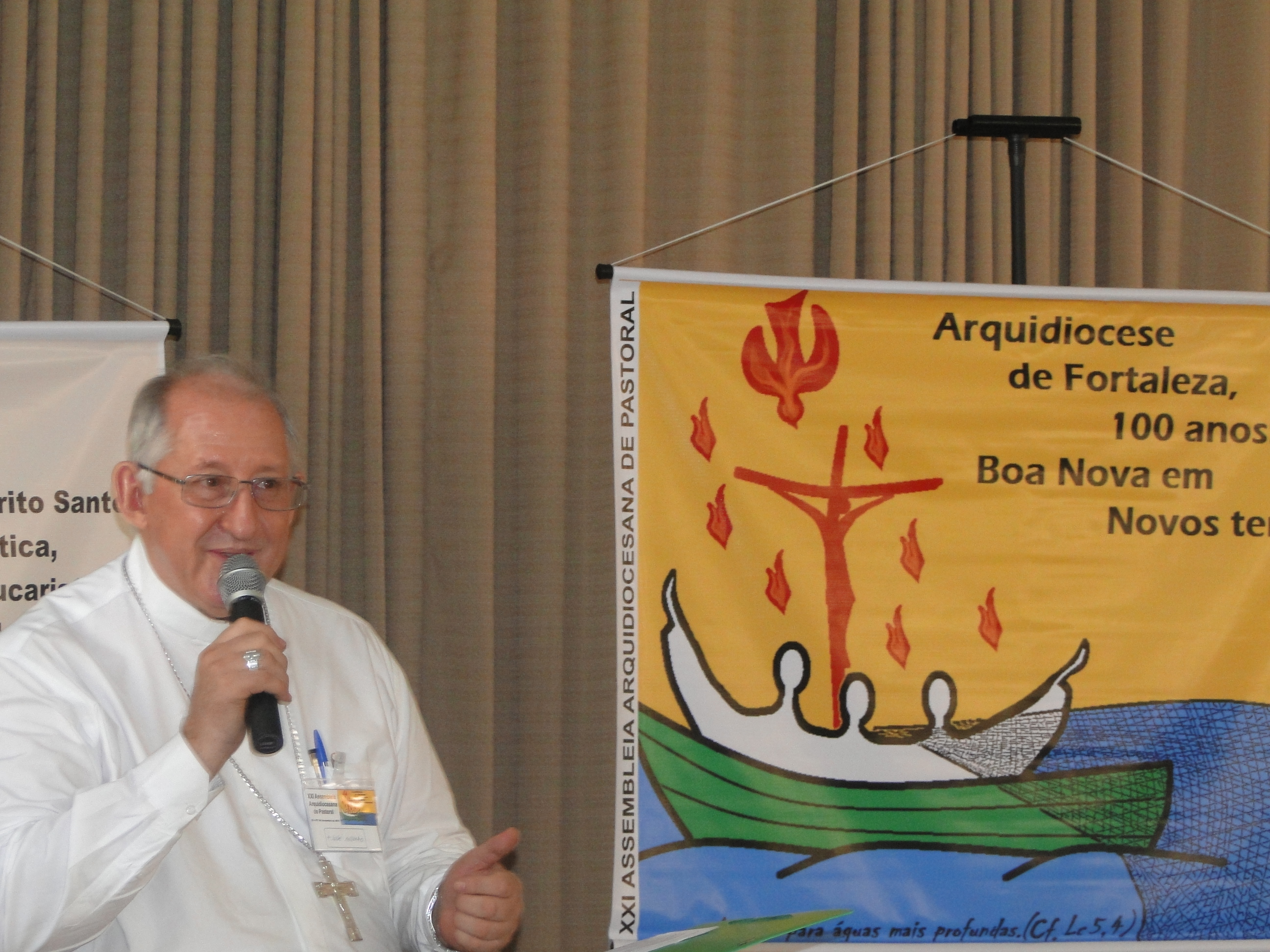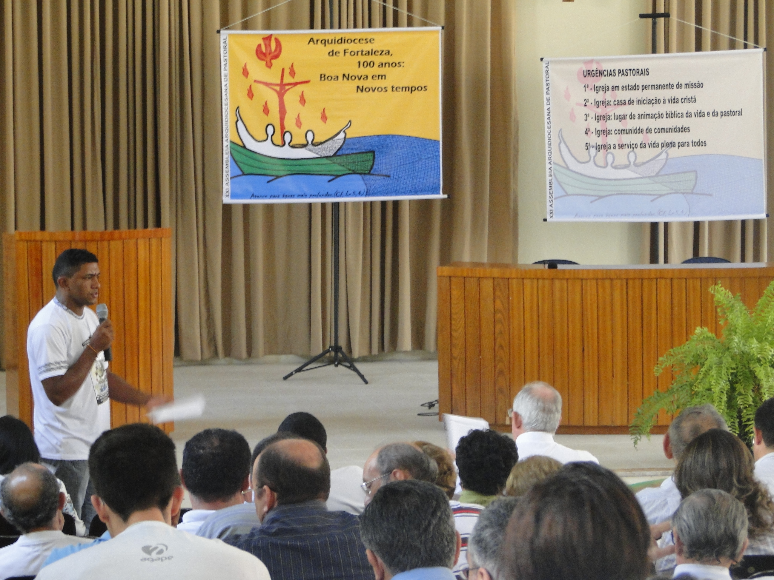 Em assembleia, a Arquidiocese de Fortaleza iniciou os primeiros passos rumo ao seu novo Plano de Pastoral. Na manhã de hoje, 26/11/2011, os participantes tiveram as boas vindas do arcebispo de Fortaleza, Dom José Antonio Aparecido Tosi Marques. O arcebispo lembrou a todos que “não estamos aqui para uma reunião burocrática, mas para reafirmar o sentido de igreja”.Padre Ivan, coordenador arquidiocesano de pastoral, fez a leitura do regimento das Assembleias Arquidiocesanas. Logo em seguida, passou a palavra ao assessor da assembleia, Padre Almir Magalhães que apresentou o objetivo geral e as cinco urgências contempladas na Diretrizes Gerais da Ação Evangelizadora da CNBB. Após a apresentação de Pe. Almir, alguns delegados manifestaram suas opiniões sobre o tema.