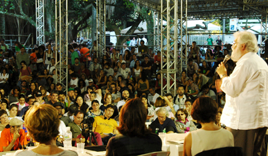 Centenas de «atividades autogestionadas» promovem discussões e fazem propostas de justiça social e ambiental na Cúpula dos Povos no Rio+20. Um dos painéis teve como principal orador o teólogo e escritor Leonardo Boff