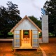 Além disso, foram feitas mudanças invisíveis para a adaptação do volume ao código de construção local, assim como algumas melhorias no projeto original, como isolar o encanamento, por exemplo, enterrando-o no chão. Um dos toques elegantes e da eficiência do custo é que a casa é construída acima do solo, portanto sem fundação. E para liberar espaço no banheiro, o empreiteiro Brent Lindley usou um aquecedor de água sem reservatório.