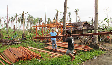 Depois de despacharmos mais de duas dúzias de camiões cheios de provisões de socorro de emergência para o norte de Cebu e Leyte, estamos agora a despachar o material de construção para as áreas mais afetadas. O primeiro destino do material de construção foi para norte de Cebu nas vilas de Daan Bantayan, Bogo e Medelien e na ilha de Bantayan. Em Leyte, os destinos foram as vilas de Dulag, Tanauan, Tolosa e outras.