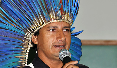 «Estão em curso no Brasil uma série iniciativas que procuram reduzir e suprimir os direitos dos povos indígenas, reconhecidos pela Constituição Federal Brasileira e reafirmados por tratados internacionais. O modelo de desenvolvimento brasileiro objetiva disponibilizar os territórios indígenas, e de outros segmentos e comunidades tradicionais, para a exploração descontrolada dos bens naturais, a expansão do agronegócio e a implantação de grandes empreendimentos. Para tanto, o governo paralisou o processo constitucional de demarcação de nossos territórios, aumentando gravemente os conflitos territoriais em várias regiões do Brasil», relatou o Terena.